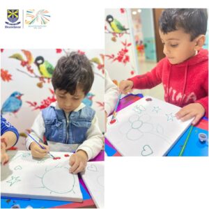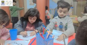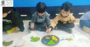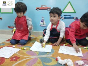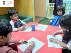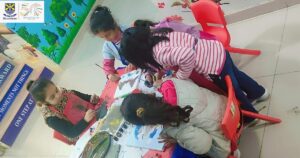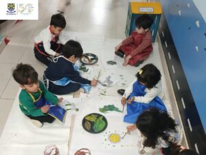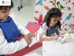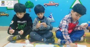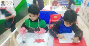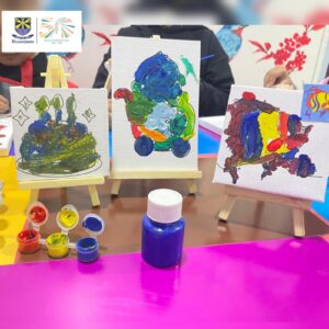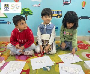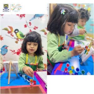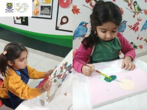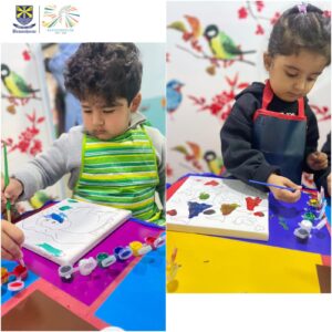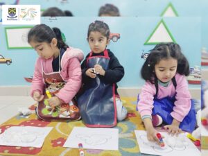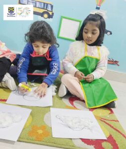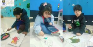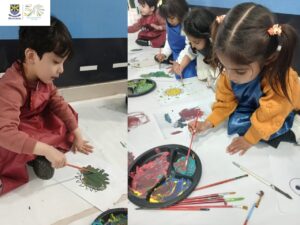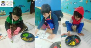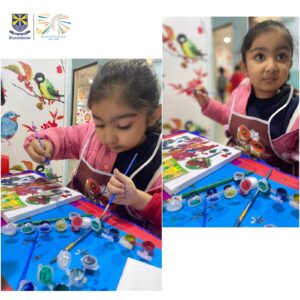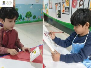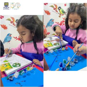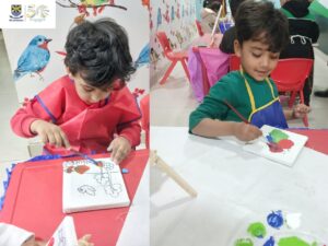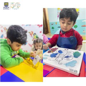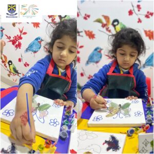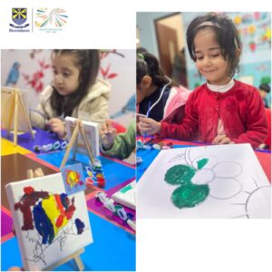 Pre-Nursery kids had a blast on Art Day ! They dived into colors, splashed paints, painted canvas with brushes, pasted hands, and explored textures. They enjoyed playing with colors, it was a day of messy, joyful learning. Let’s have a few glimpses of the day.