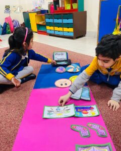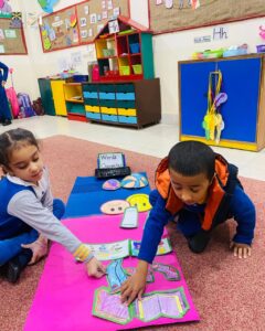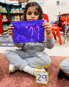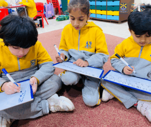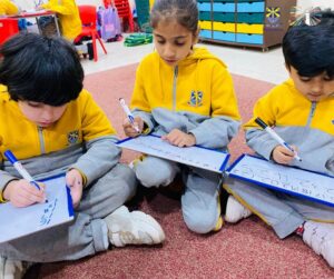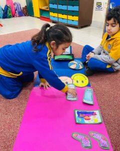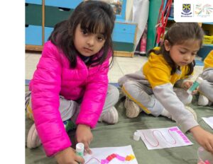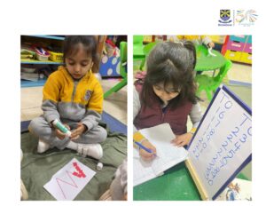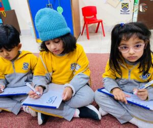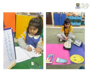 The students of Nursery Class are engaging in various fun activities as part of their learning process. They are exploring numbers and concepts through play-based learning, including recognizing and writing numbers, counting objects and having a blast while learning.