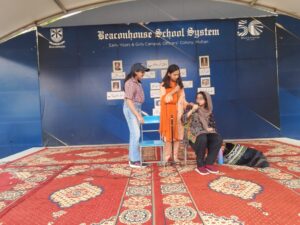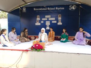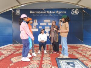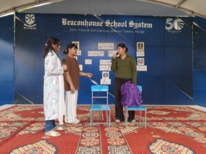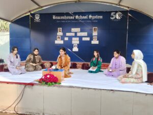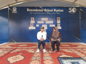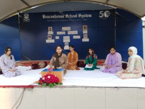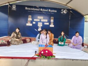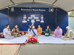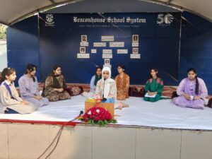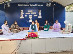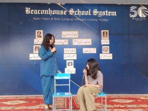 بیکن ہاؤس اسکول سسٹم ارلی ائیرز اینڈ گرلز کیمپس آفیسرز کالونی ملتان میں اردو زبان کے فروغ کے لیے ہفتہ اُردو منایا جا رہا ہے۔ بدھ 5 نومبر 2025 کو اردو ادب سے متعلق پروگرام منعقد کیا گیا جس میں جماعت چہارم تا ہشتم کی طالبات نے اردو نظم گوئی، ڈرامہ، ٹیبلو اور مشا عرہ جیسی مُختلف سرگرمیوں میں بھرپور حصہ لیا۔