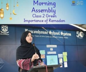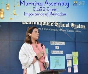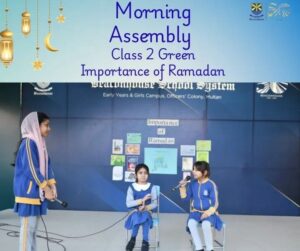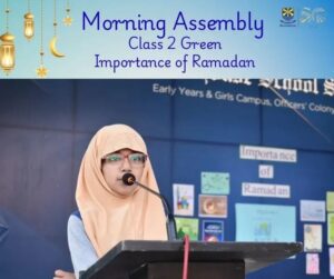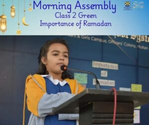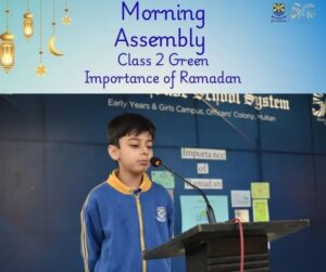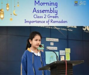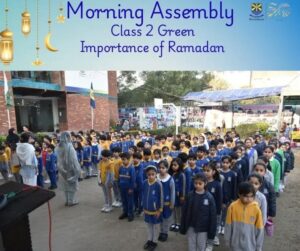 Class 2 presented a splendid morning assembly on the importance of Ramadan 🌙✨. They highlighted its blessings and explained why Muslims fast, portraying Ramadan as a shining crescent of hope and fasting as a shield of faith 🛡️.