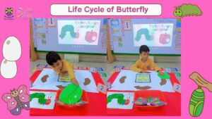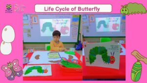 Our Pre-Nursery kids began their butterfly adventure with a fun theme opening! They then explored the life cycle of a butterfly through hands-on activities, learning the 4 stages: egg, caterpillar, pupa, and butterfly. They also enjoyed listening to “The Very Hungry Caterpillar”. Let’s have a few glimpses.