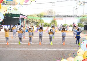 The stage was filled with excitement, color, and enthusiasm as children confidently spoke and sang, showing their growing knowledge and confidence.