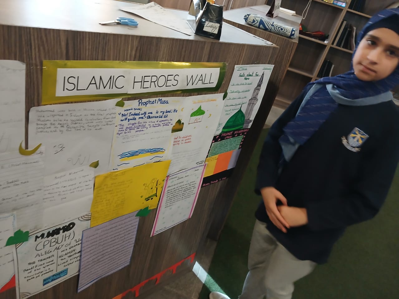 Class 5 students researched Islamic leaders, heroes and Prophets and created posters for the Islamic Heroes Wall, developing research and presentation skills.