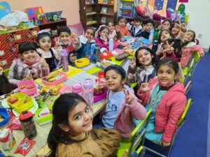 24, December 2021 was the last day of first term at BFKG. Students came in colorful clothes along with their favorite edibles. In the assembly students enjoyed a lot, they danced and showed their styles. After that all the classes went to their classes and had a wonderful party. All the students sat together and shared food with their friends.