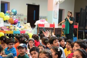 From colorful balloons and birthday invites to cheerful songs and yummy cakes, the children experienced the joy of setting up a birthday party. They learned what things are needed to organize a celebration — like decorations, cake, candles, music, and of course, happy faces.