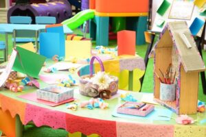 The concept of invitations was introduced in a playful way. The children were shown how birthday invites are made and given to friends — helping them understand the idea of calling others to be part of our special moments. Tiny hands helped in making simple, colorful invites, adding to the fun.