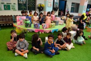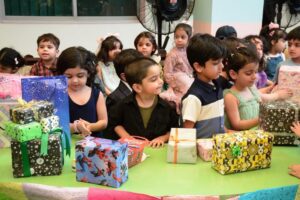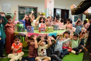 One of the most exciting parts of the activity was learning how to pack a gift! Children wrapped small boxes with shiny paper and ribbon, feeling the joy of giving — not just receiving. Through this, they discovered that gifting is about making someone else feel happy and special, and it sparked a lovely sense of kindness and sharing.
