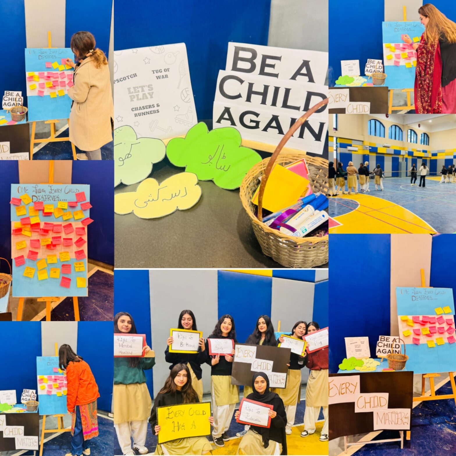 The reflection board, One Thing Every Child Deserves, encouraged students to think deeply about children’s emotions and needs, fostering empathy and understanding. Adding a joyful and energetic element, Be a Child Again, conducted with the support of sports teachers, allowed students to relive the spirit of childhood through different games. The celebration beautifully reinforced that every child deserves care, respect, and happiness.