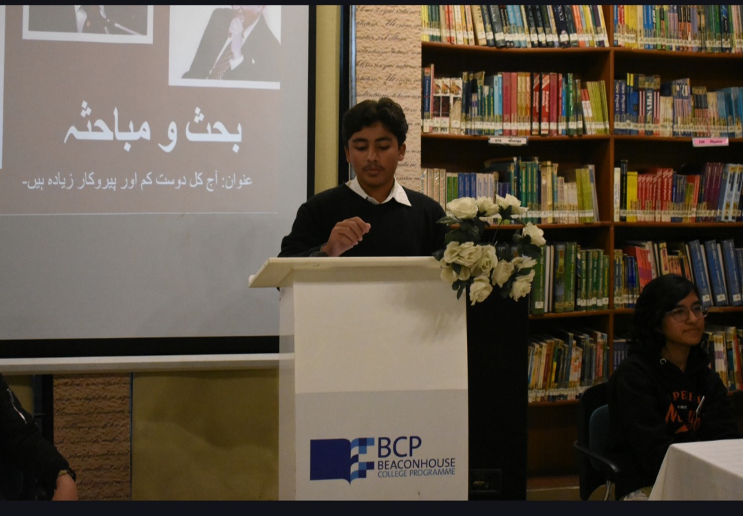 Iqbal Week was celebrated with great enthusiasm at Beaconhouse Margalla Campus, bringing students together to appreciate the richness of the Urdu language. Throughout the week, students participated in a diverse range of competitions, including Bait Bazi, Bahis-o-Mubaahisa, and other literary activities that highlighted their creativity, confidence, and command over expression. Each segment of the event aimed to promote cultural understanding and encourage students to explore the depth and beauty of Urdu literature.