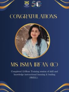 We proudly congratulated our amazing instructional coach, Ms. Isma Irfan, on successfully completing the SKILL training session—Skill and Knowledge Instructional Learning & Leading. This accomplishment reflected her dedication to professional growth and her commitment to enhancing teaching and learning practices. Her achievement was a source of pride and inspiration for the entire school community.