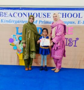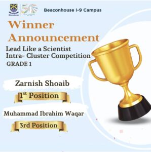 Among all the talented participants, the students of Beaconhouse School System I-9 Campus stood out with their exceptional performance. We are immensely proud to announce that our Grade 1 students, Zarnish Shoaib secured 1st Position and Muhammad Ibrahim Waqar secured 3rd Position and excelled in the Intra-Cluster Quiz Competition themed “Lead Like a Scientist”, held at the E-11 Branch, marking a significant accomplishment at the inter-cluster level.