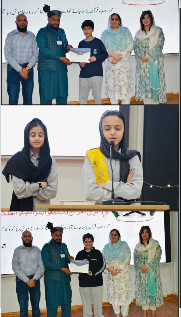 The precision of Tajweed (elocution) showcased by the participants was a testament to their hard work and the dedicated guidance of our faculty. Every verse recited served as a reminder of the light that faith brings into our lives, casting a glow of “Noor” over the entire gathering.