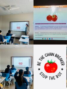 As the days pass, the tomatoes will slowly begin to rot, producing an unpleasant smell and visible decay. This process is meant to symbolize how negative words, gossip, and bullying behaviors can spread and worsen over time if left unchecked. Just like the tomatoes, unkind actions don’t stay contained—they affect not only individuals but the entire community.