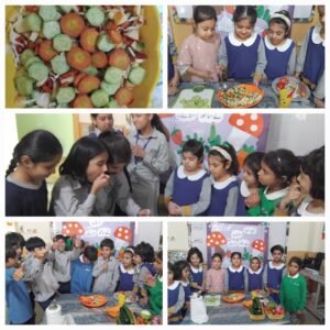 جماعت اول کے بچوں نے متوازن غذا کی اہمیت کو جاننے کے لئے ایک دن “سبزیوں کے ساتھ” منایا۔ اس سرگرمی کا مقصد بچوں کو صحت مند کھانے اور سبزیوں کی افادیت کے بارے میں آگاہی دینا تھا۔