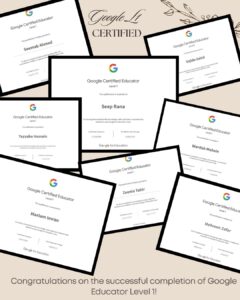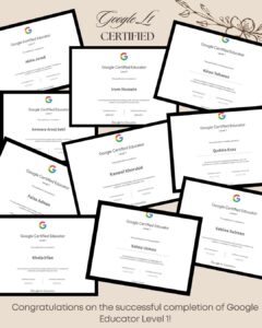 We are thrilled to announce that our dedicated team members have successfully completed the Google Educator Level 1 (GEL1) Certification Exams & Support Sessions. This achievement reflects not only their commitment to expanding their skills but also their passion for bringing innovative teaching practices and digital tools into the learning environment.