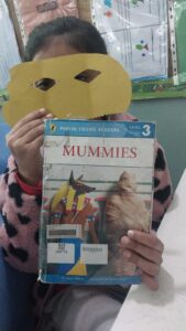 Using their props, students confidently talked about their stories, characters, and favourite scenes. This hands-on activity not only boosted their speaking skills but also helped them understand their books in a deeper and more imaginative way.