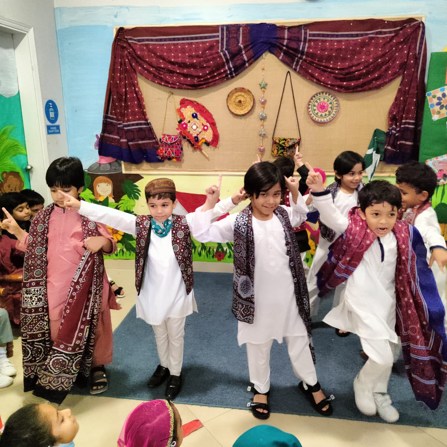 To foster the spirit of festivity all the students and staff were dressed up in traditional Pakistani attires and carried small flags with them. Early Years enthusiastically took part in making flags themselves using painting, collage pasting and coloring. Students made ajrak prints using stamps and decorated handicrafts. Students of both early years and lower primaries were shown special presentations on each of the provinces of Pakistan and it’s distinctive language, lineage, legacy of traditions, attire and food. The students took part in describing which of the province they belonged to and it’s customs.