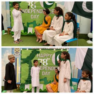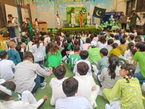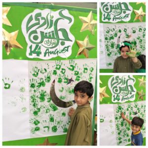 To make the day more memorable, the students showcased a tableau and a skit that highlighted the true spirit of Pakistan and reminded everyone of the hardships Muslims endured to gain freedom. They also participated in engaging activities like drawing, painting, and coloring flags. These activities not only added joy to the celebration but also strengthened their understanding of the sacrifices made for the country’s independence.