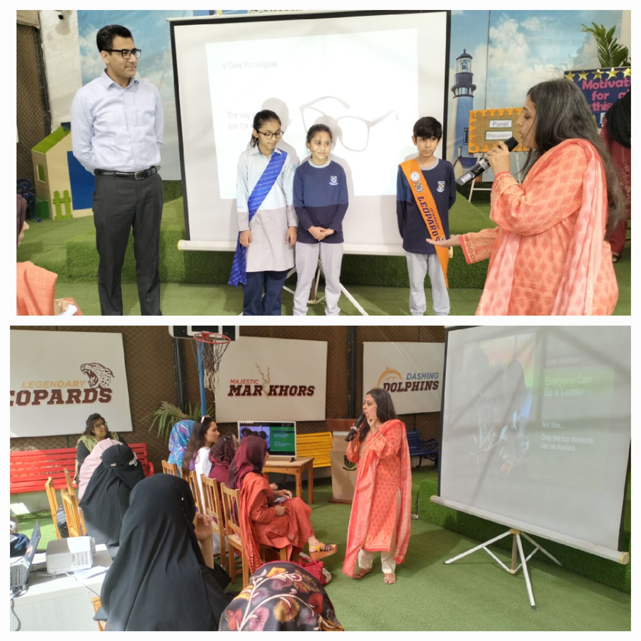 The Leader in Me Symposium at BECP was an exciting and inspiring event where students from Grades 1 to 5 showcased their leadership skills. The symposium was held on February 28, 2025 which brought together students, teachers, and parents to celebrate the Leader in Me philosophy and its impact on young learners in our school. A special highlight of the event was the session by Chief Guest Ms. Saima Raheel, Leader in Me Coach who spoke to parents about the importance of leadership skills in children. She emphasized how the Leader in Me is not just a school program but a lifetime mindset that empowers children to be confident, responsible, and goal-oriented individuals. Parents actively participated in discussions, asked questions, and appreciated the efforts of students and teachers in implementing leadership principles at an early age. The event strengthened the connection between school and home in fostering a leadership culture.