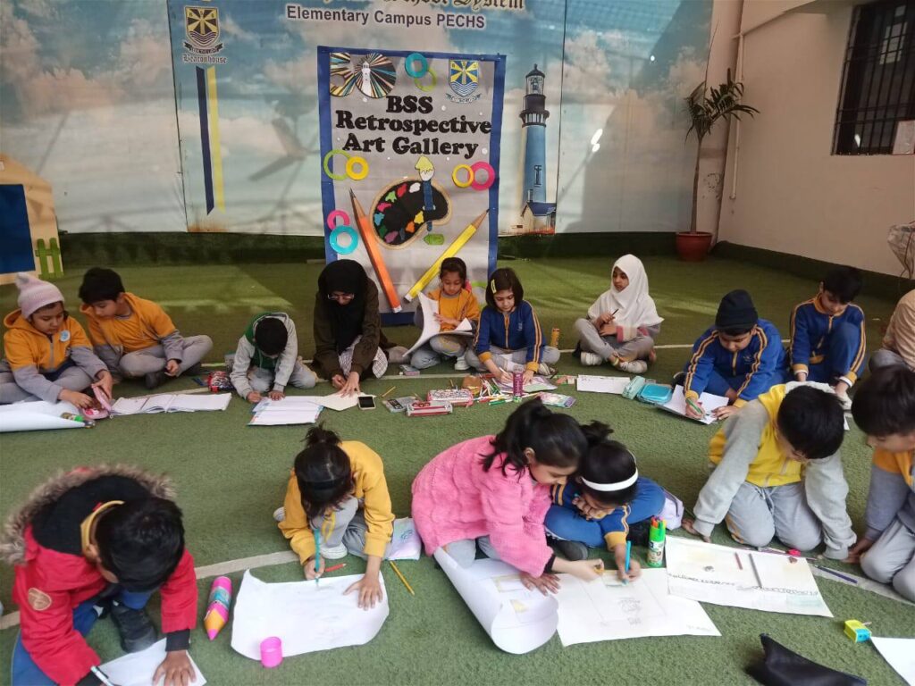 Students of Classes 1 till 5 embraced the theme of the day by creating artwork that reflected key moments, values, and milestones in Beaconhouse’s history. Students expressed their creativity through vivid drawings, thoughtful reflections, and imaginative designs that brought the legacy of Beaconhouse to life. Teachers guided and encouraged students to dive deep into the school’s inspiring journey, fostering a sense of pride and connection.
