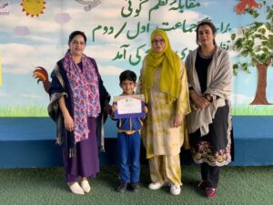 ادب اور تخلیقی اظہار بچوں کی ذہنی و اخلاقی تربیت میں بنیادی کردار ادا کرتے ہیں۔ اسی مقصد کے تحت ہمارے اسکول میں جماعت اوّل اور جماعت دوم کے طلبہ کے مابین مقابلۂ نظم گوئی کا انعقاد کیا گیا، جو اپنی مثال آپ ثابت ہوا۔