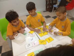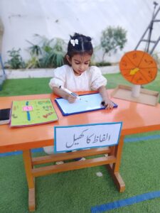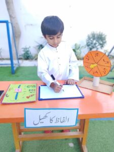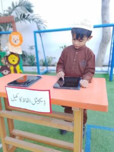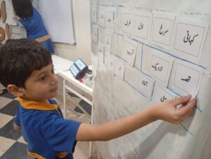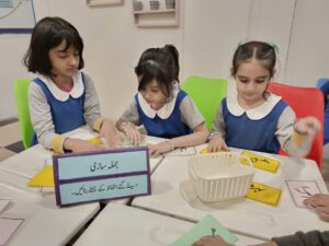 مزید برآں، جماعتِ اول کے بچوں نے بصری الفاظ، اسم، فعل اور اختتامی الفاظ کی مدد سے جملے بنانے کی مشق کی۔ اس عمل نے نہ صرف ان کی زبان دانی کو بہتر بنایا بلکہ جملہ سازی کی مہارت میں بھی اضافہ کیا۔