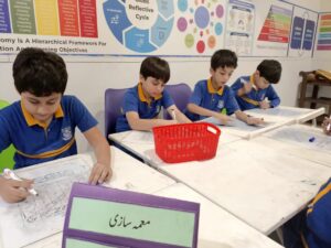 دوسری جانب، جماعتِ دوم کے بچوں نے مذکر و مونث اور صفت سے متعلق دلچسپ سرگرمیوں میں حصہ لیا۔ بچوں نے بے ترتیب جملوں کو درست ترتیب میں لکھنے کی مشق کی اور معمہ سازی کی سرگرمی کو بھی نہایت عمدگی سے انجام دیا۔ یہ سرگرمیاں بچوں میں گہرے لسانی شعور، منطقی سوچ اور تخلیقی اظہار کو فروغ دینے میں مددگار ثابت ہوئیں۔
