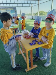 Critical Thinking & Math in Action: Students faced real-world problems. “If a cookie costs Rs.50 and the customer pays with Rs.100, how much change do I give back?” These quick calculations fostered critical thinking and solidified their understanding of basic Math concepts more effectively than any worksheet.