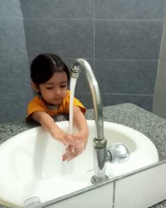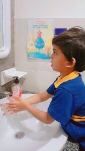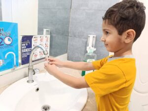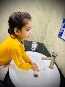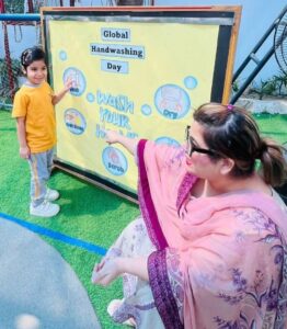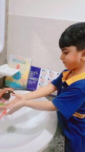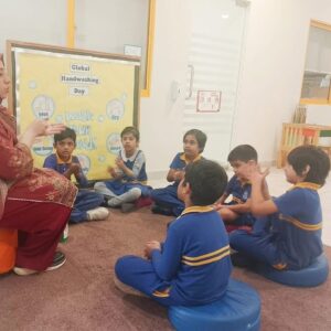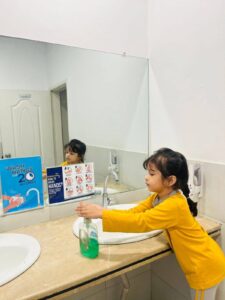 The focus of the day was practical, hands-on learning. Our teachers used fun, interactive methods to ensure the essential steps of handwashing became second nature. We sang catchy songs (often the “Happy Birthday” tune twice!) to teach the crucial 20-second rule and learned the five golden steps: wet, lather, scrub, rinse, and dry.