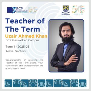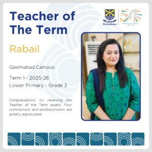 We are pleased to recognize and congratulate the exceptional teachers from the Qasimabad Campus who have been awarded the Teacher of the Term Award for Term 1 (2025–26). This recognition reflects not only classroom excellence but also dedication, professionalism, and a strong commitment to student success.