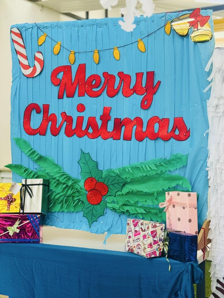 The campus came alive with festive décor, creating a cheerful and welcoming atmosphere. Thoughtfully arranged decorations added a touch of Christmas magic, filling the surroundings with joy and warmth. The celebration began with a cake-cutting ceremony, a simple yet meaningful moment that symbolized sharing happiness and spreading smiles. Laughter, kind wishes, and heartfelt conversations made the moment truly special.