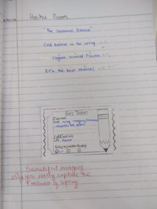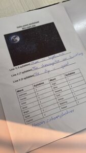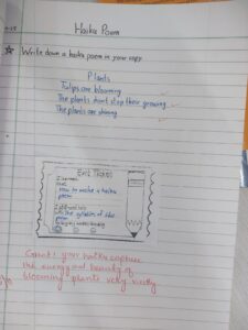 The lesson concluded with an independent writing task, where each student composed a personal haiku, showcasing their understanding of structure, language, and emotional expression. Through a “Reflection Wall” on Padlet, students shared what they learned, what they enjoyed, and what they found challenging.