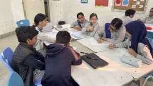 Students then explored the structure of haiku poetry—three lines following the 5–7–5 syllable pattern. With the teacher modelling the process on the smartboard, learners collaborated, clapped out syllables, discussed themes, and read sample haikus together. The excitement grew as creativity sparked across the room.