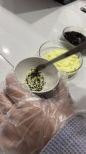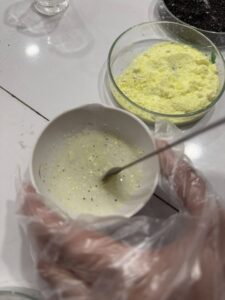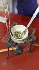 The excitement grew during the lab activities. First, students examined iron filings and sulfur, combined them to form a mixture, and used simple separation techniques like magnetism and water testing to observe how the original properties remained unchanged.