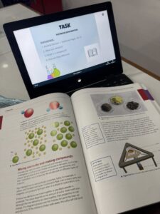 The lesson began with an interactive Nearpod quiz that quickly refreshed their prior knowledge and set the tone for an active learning session. Students then worked in small groups to discover the definitions and characteristics of mixtures and compounds, using their textbooks and guided discussion to build understanding.