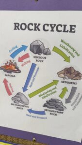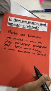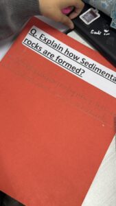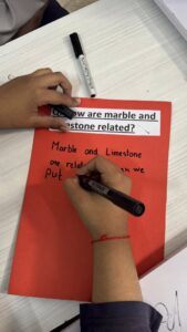 A gallery walk brought all the learning together as students viewed each group’s work, shared observations, and compared the unique qualities of each rock type. The session concluded with a 3-2-1 reflection activity, allowing learners to highlight new insights, raise thoughtful questions, and identify misconceptions they had resolved.