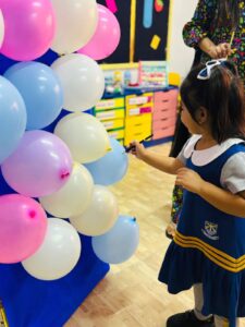 The highlight of the session was a joyful balloon-popping game, which filled the classroom with excitement and laughter. Each balloon revealed a picture or word, and the children enthusiastically guessed whether it began with the “S” sound. This playful activity encouraged turn-taking, focus, and active participation while reinforcing sound–letter connections in an engaging way.