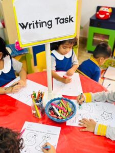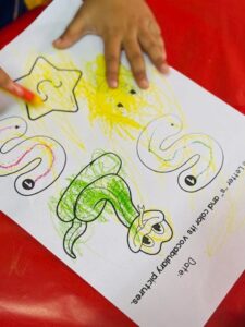 The day began with lively discussions around familiar objects and words that start with the /s/ sound. Children eagerly listened, repeated sounds, and shared their ideas, strengthening their phonics awareness and listening skills. Through guided practice, they traced and formed the letter S, helping to develop fine motor control and confidence in early writing skills.