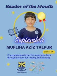 We’re thrilled to celebrate Mufliha Aziz Talpur (Grade 4A) as this month’s Reader of the Month!