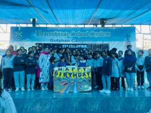 On 4th November 2025, we joyfully celebrated Beaconhouse’s 50th birthday, a milestone that filled the morning with excitement, pride, and heartfelt gratitude. The celebration began with a special ceremony where students and teachers celebrating their birthdays in November were invited on stage for the cake-cutting ceremony. A highlight of the event was the recognition of Miss Farhana Agha, who has devoted an inspiring 40 years to Beaconhouse, along with students celebrating their birthdays in November. The atmosphere brimmed with nostalgia and admiration as everyone reflected on the school’s remarkable journey—five decades of nurturing young minds, fostering growth, and shaping future leaders.