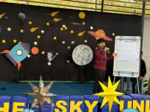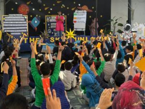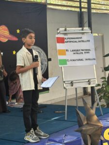 The finale included an interactive “Mysteries of the Sky” Quiz, where the audience participated using colored traffic-light response cards, turning learning into a lively, collaborative experience!