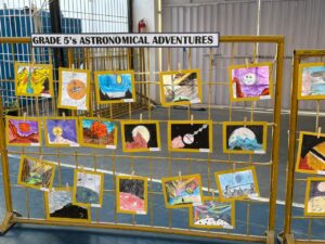 🎨 Painting the Sky Through Art: Inspired by Chesley Bonestell, the “Father of Space Art,” students created stunning celestial paintings that represented eclipses, sky patterns and cosmic landscapes. Their artwork became a highlight of the culmination display!