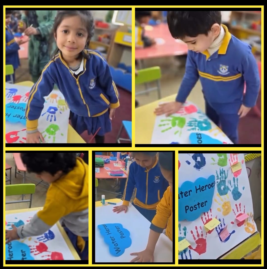 As our little Water Heroes of KG Orange moved towards the concluding phase of their Project-Based Learning journey, excitement filled the classroom with a splash of creativity and purpose. With bright smiles and even brighter ideas, students created Water Hero posters using colorful handprints and meaningful messages. ✋🌈