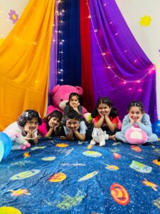 To set the perfect mood, an entire room was transformed into a cosy, dreamy space adorned with twinkling fairy lights, glowing stars on the ceiling, soft blankets, and decor inspired by the world of bedtime and imagination. The atmosphere was buzzing with joy, echoing with laughter, cheerful chatter, and the giggles of children sharing stories and dreams.