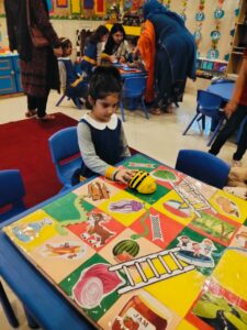 Children moved from room to room, discovering fun and exciting learning stations. They played digital games on tablets, used Beebots to explore simple coding, and enjoyed an interactive Snakes and Ladders game laid out on the floor. The use of IRAs and hands-on materials made learning truly come alive for our curious learners.