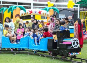 One of the highlights of the day was the train ride arranged in the playground, along with the lively jumping castle (Jumpolina). Children laughed, cheered, and enjoyed these activities with their peers, creating an atmosphere of joy and celebration. The playful energy on the playground truly set the tone for a day filled with fun, discovery, and togetherness.