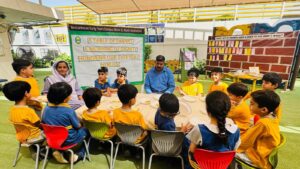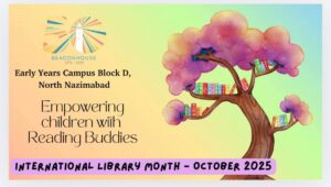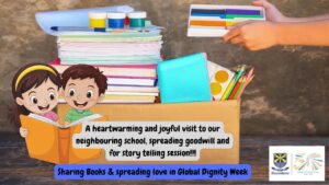 This October, something truly heart-warming filled the hallways of our school. Little hands held books a bit tighter, smiles stretched wider, and kindness was shared generously as students took part in Global Dignity Week. Our kindergarten and Class 2 learners stepped into the week with the purest intention to make others feel valued. They collected books and stationery and carried them with excitement to a neighboring school. They made new friends, shared warm greetings, and filled hearts along with school bags. In those moments, dignity was not just taught but lived.