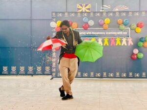 The magician, with his animated movements, playful humor, and expert illusions, transformed the stage into a realm of wonder and excitement. Students watched in awe, their laughter and cheers creating an atmosphere brimming with joy, amazement, and shared delight. Every trick was met with gasps and giggles, reminding everyone that true magic is not just in sleight of hand but in the spark it ignites in young hearts.