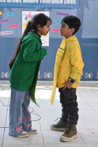 Through simple yet impactful performances, students highlighted the importance of empathy, understanding, and cooperation in daily life. Their confident participation and expressive delivery reflected careful preparation as well as a genuine grasp of the values being shared.
